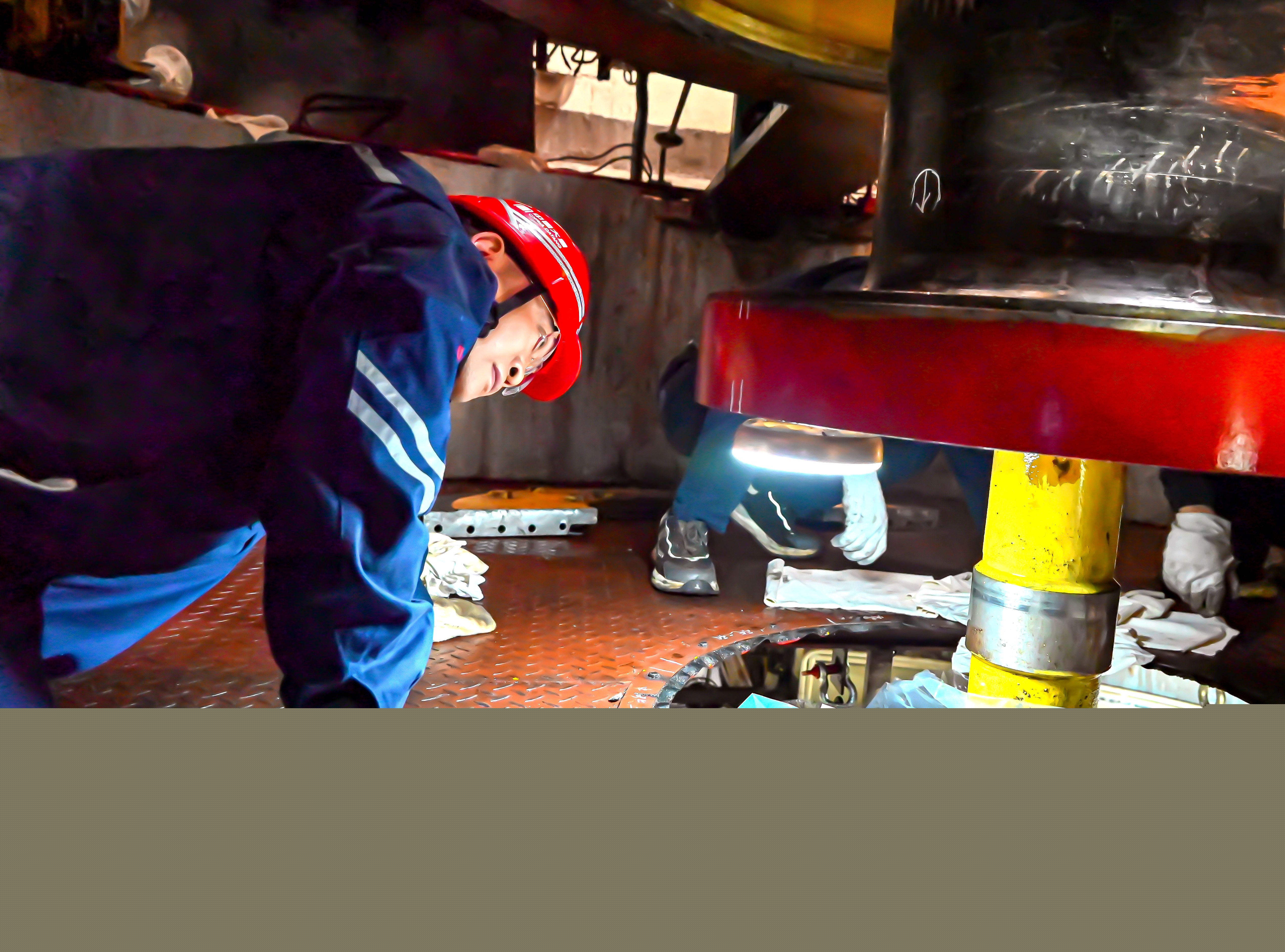 現(xiàn)場業(yè)主帶班人劉慶聞訊,立刻擠過人群,俯身仔細查驗推力頭與鏡板的結(jié)合面。
