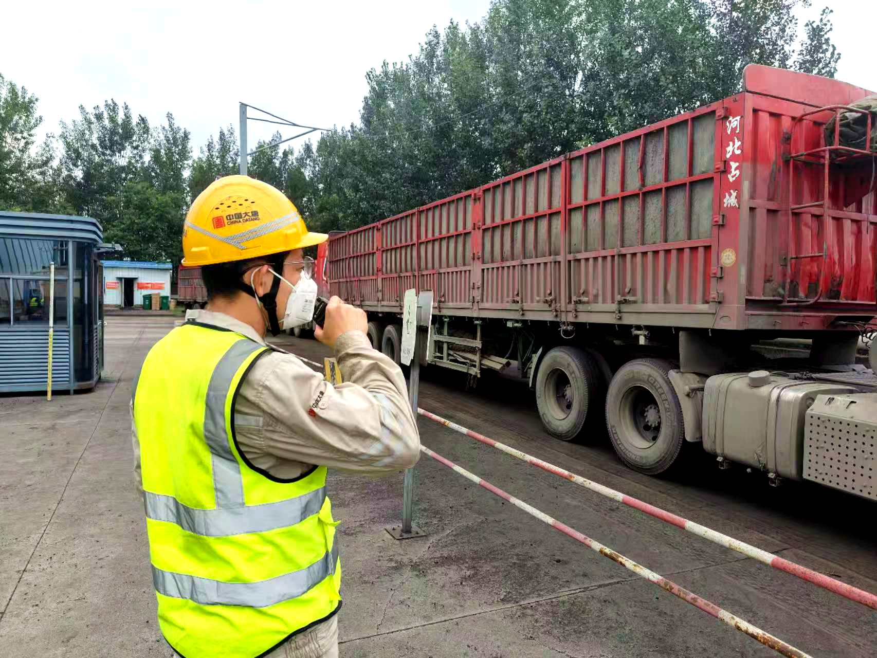 老王的指令通過對講機傳來,隨即轉向引導下一輛運煤車:“師傅,請刷卡,準備過磅。”他穿梭于車輛之間,既要保暢通,又指導司機配合機械采樣。