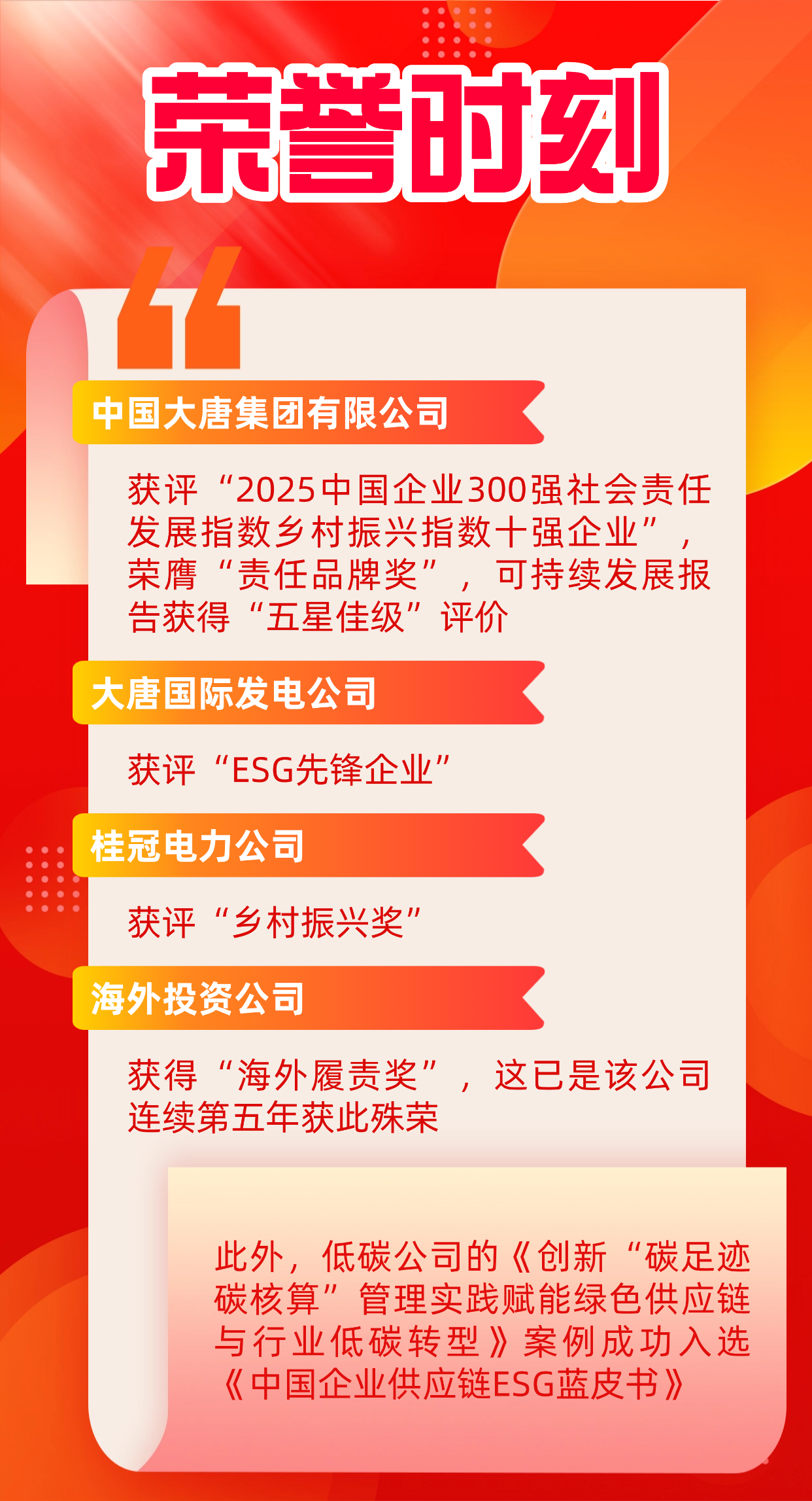 在本屆責任展上,中國大唐憑借在社會責任與ESG領域的全面深耕,獲得了多項認可。