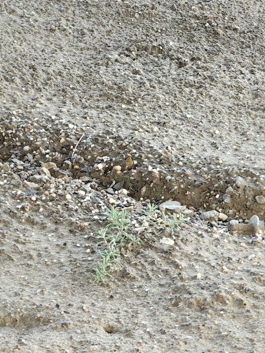 受光伏板遮擋,記者發現每塊光伏板遮擋下的陰影中土地都有不同程度的濕度變化,有些土地上竟然長出了小草。
