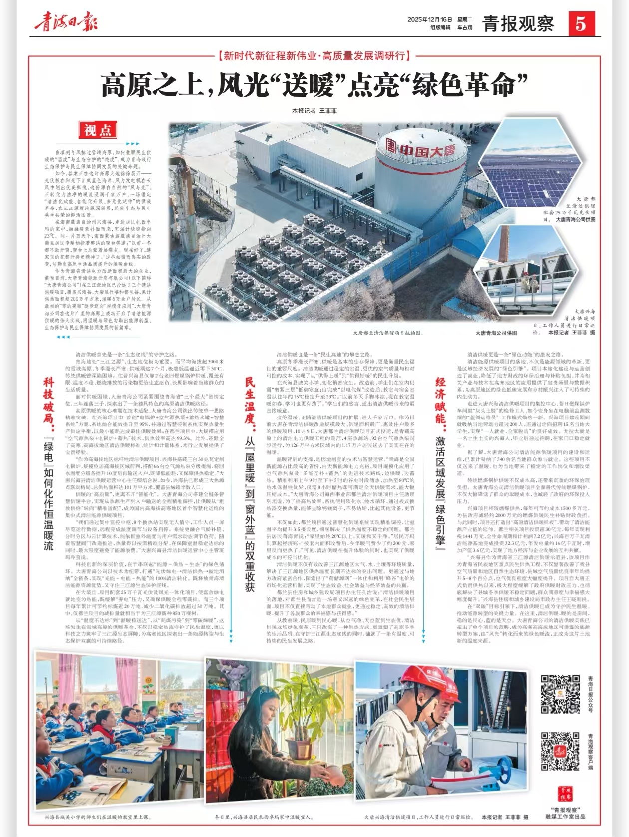 [青海日?qǐng)?bào)]2025-12-15,高原之上,風(fēng)光”送暖”點(diǎn)亮”綠色革命”