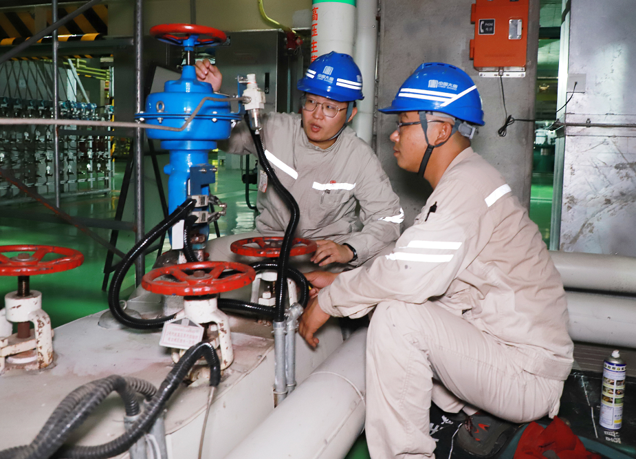 “為什么沒看到冷卻塔呢?這可是火力發電廠的標志啊。”聽了老師傅的講解我才知道,原來那一排如“哨兵”般佇立于廠區南側,常年“云霧繚繞”的便是區別于大部分火電廠“自然通風冷卻塔”的“機力通風冷卻塔”。值得一提的是,我們公司創新使用了“一機雙塔”節能降耗技術:通過將兩臺機力通風冷卻塔的回水管道連通,當單臺機組運行時,可以將循環水噴入到另一臺機力塔中增大冷卻面積,夏季可提高機組真空1.53 kPa,年節能量4802噸標準煤。