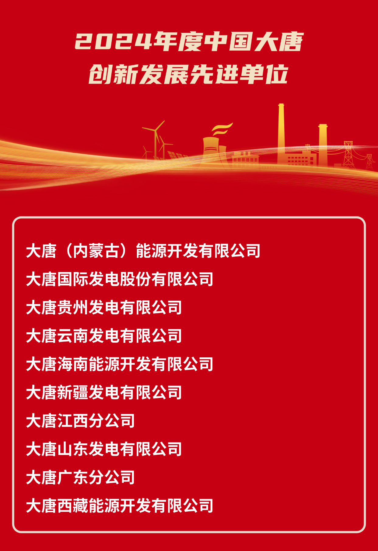 2024年度中國大唐集團有限公司創新發展先進單位