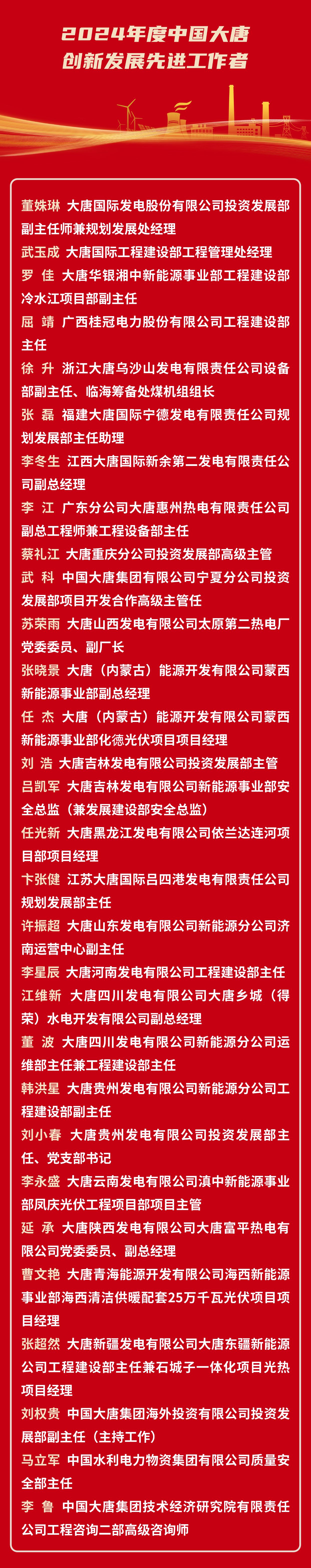 2024年度中國大唐集團有限公司創新發展先進工作者