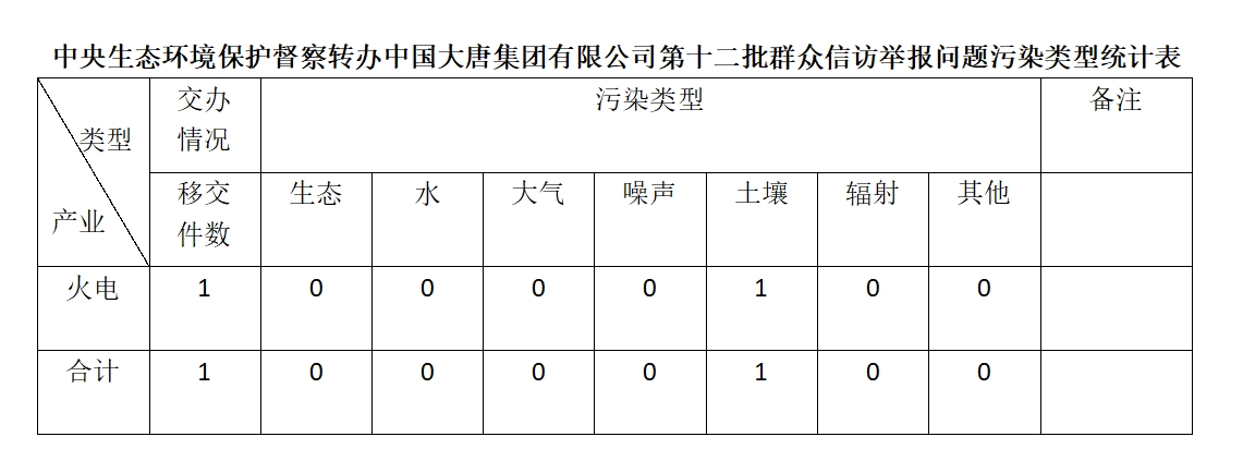 2025年6月16日,中央第七生態(tài)環(huán)境保護督察組向中國大唐集團有限公司移交第十二批群眾信訪舉報件,共計1件,為來信舉報,涉及土壤問題1個。所有舉報件辦理工作已第一時間進入調查核實辦理程序,辦理情況將按照相關要求反饋督察組,并及時向社會公開。